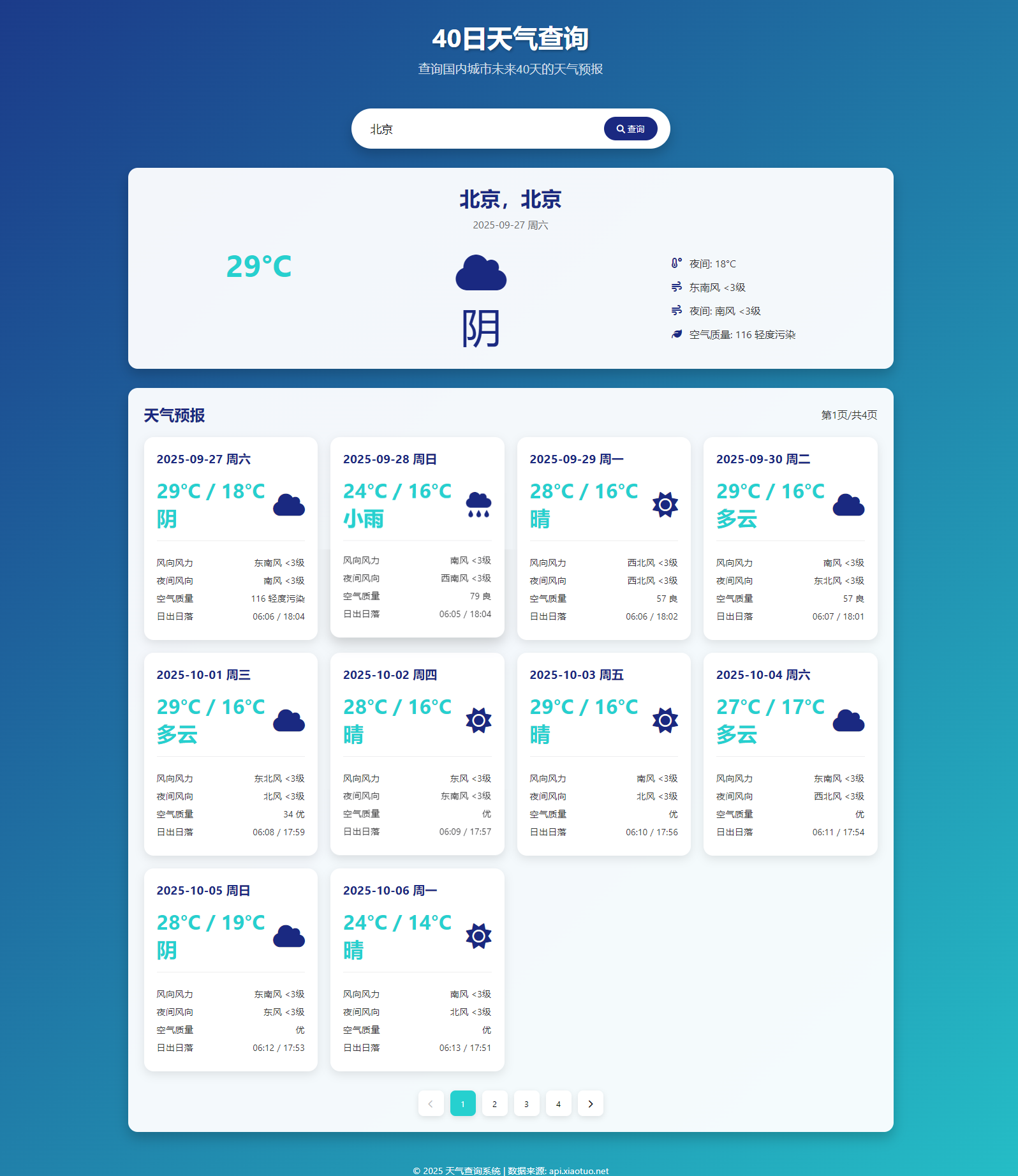 分页功能:底部提供分页按钮,方便浏览多日天气(实际分页功能需根据 API 数据进一步实现)